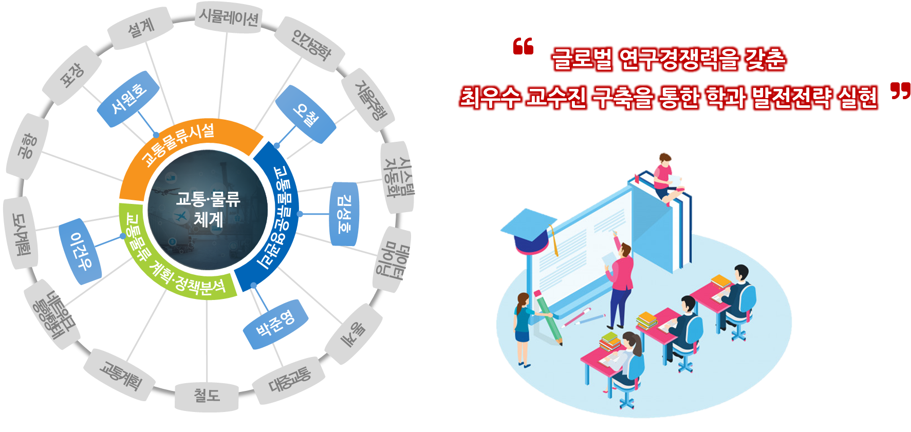 한양대학교 ERICA캠퍼스 공학대학 교통물류공학과에서는 복잡하고 심각해지는 교통문제 해결을 선도하고자 실용적인 교통전문인 양성을 위해 다양한 전공분야의 핵심 이론 및 지식을 교육하고 있다. 또한 세계적인 추세인 융/복합학문의 요구에 부응하기 위하여 사람과 교통의 연구에서 물류체계분야로 확대 개편하고 전통적인 교통공학과 물류분야의 학문을 접목하여 국가가 요구하는 교통물류분야의 전문가 배출을 위해 힘쓰고 있다.